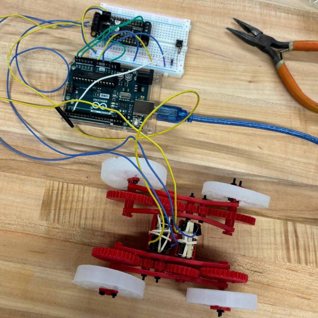 Initially, we had elected to use a wireless control scheme similar to the setup deployed on the Salamander / Lizard projects in the lab, this entailed an Adafruit Stepper in combination with the DC Motor FeatherWing. We planned on using two separate buttons, one to turn each side of the motors on and off, controlling the steering of the device.