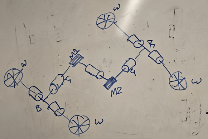 Unfortunately, we faced some Arduino based errors and decided with the time crunch of competition day arriving soon. So we stripped down on our electronics to the bare necessities. The final electronics consisted of two simple buttons manually controlling power to each motor. This design allowed for the steering control that we wanted but took away our ability to properly control the motors and ensure simultaneous and evenly powered motors.