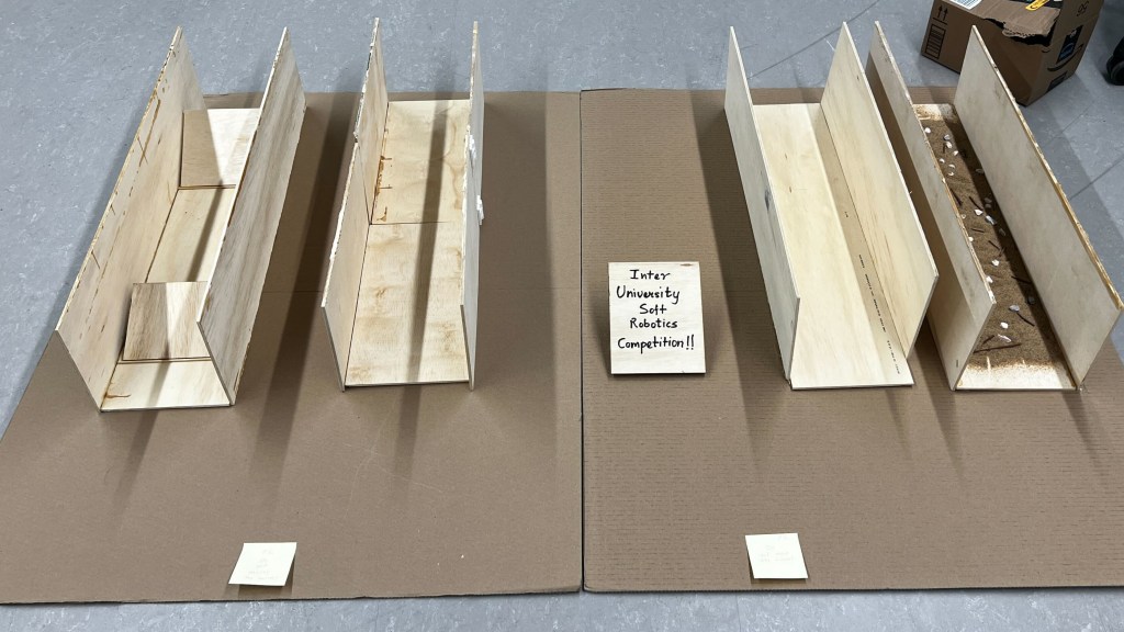 The Inter-university Soft Robot Competition held between WPI, UMich and BU entailed a 15-minute window per team to tackle a series of mobility challenges within this time frame, with the opportunity to attempt these challenges multiple times. The mobility challenges are strategically set within a variety of tunnel environments, each designed to test different aspects of the robots’ operational capabilities: